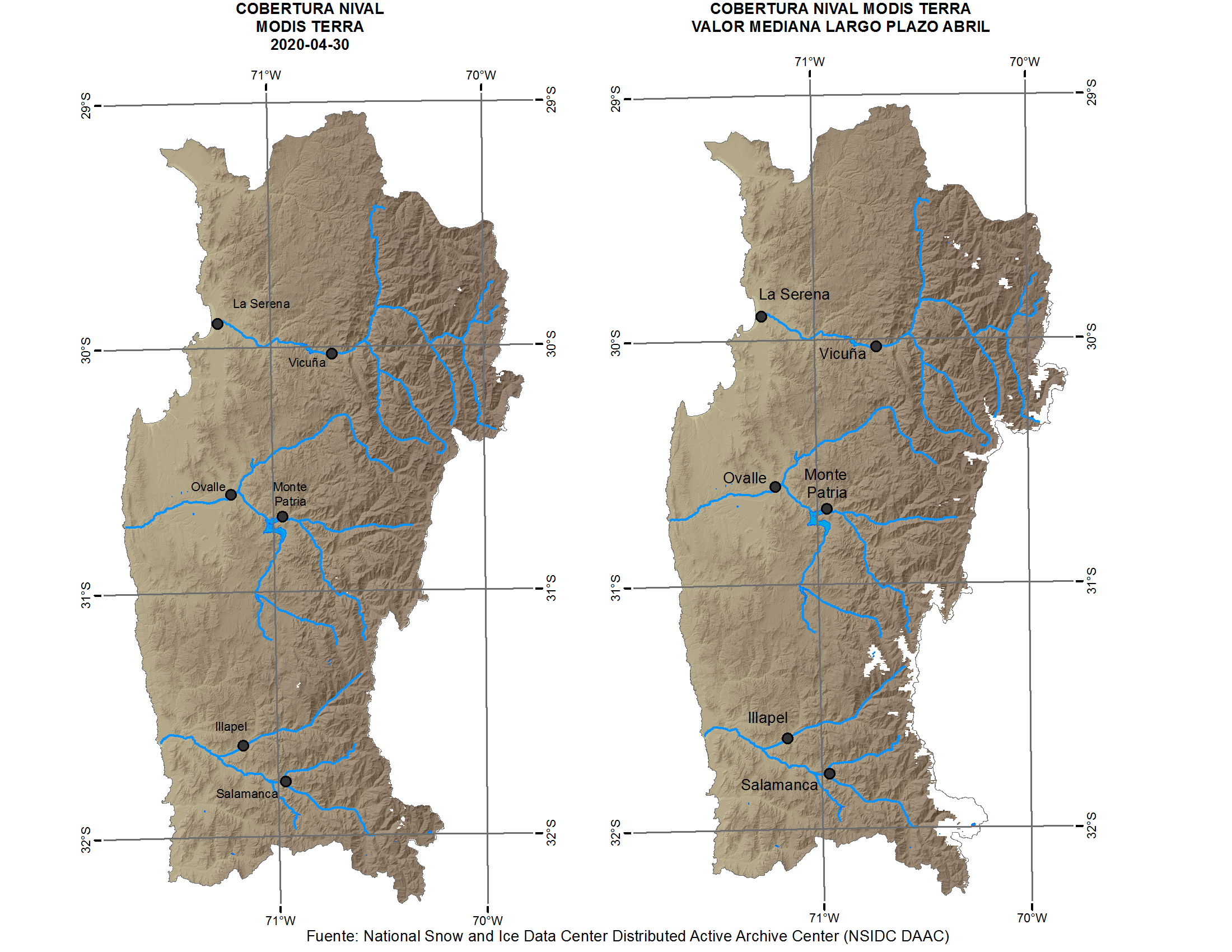 el tema de la desertificación, desde algunos índices importantes como el del ENOS hasta imágenes del diagnostico de la cobertura de nieve en la Región de Coquimbo.